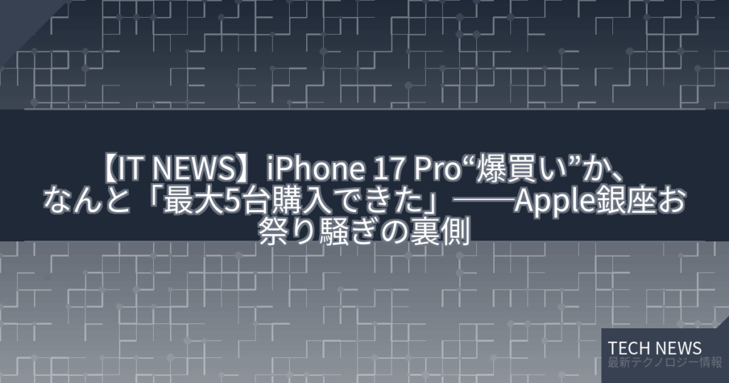 【IT NEWS】iPhone 17 Pro“爆買い”か、なんと「最大5台購入できた」──Apple銀座お祭り騒ぎの裏側