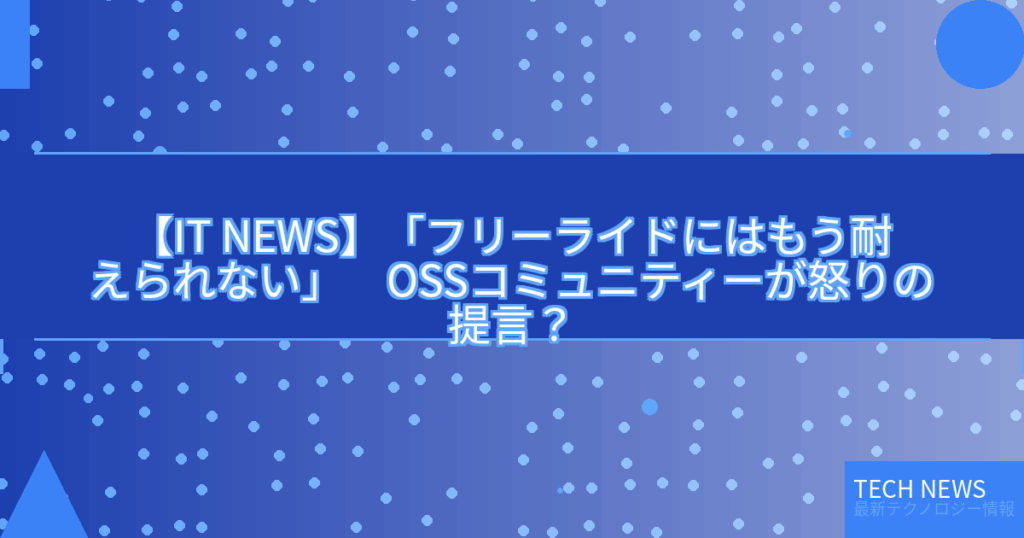 【IT NEWS】「フリーライドにはもう耐えられない」 OSSコミュニティーが怒りの提言?