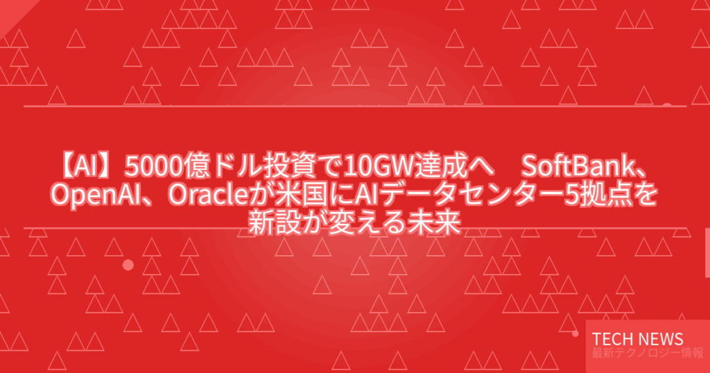 【AI】5000億ドル投資で10GW達成へ SoftBank、OpenAI、Oracleが米国にAIデータセンター5拠点を新設が変える未来