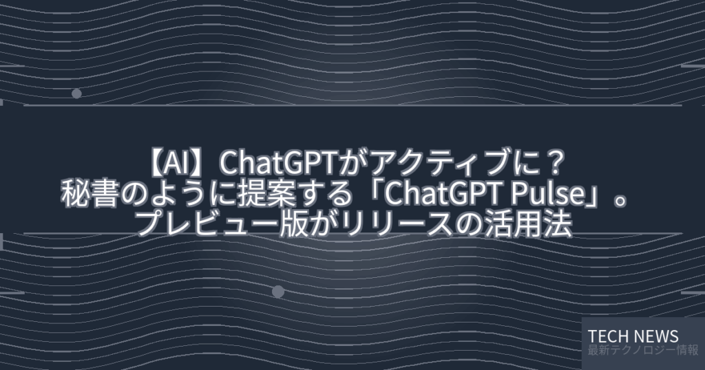 OpenAIは、ChatGPTを秘書のように能動的に機能させる取り組みとして、「ChatGPT Pulse」のプレビュー版をリリースした。