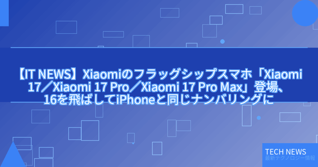 【IT NEWS】Xiaomiのフラッグシップスマホ「Xiaomi 17/Xiaomi 17 Pro/Xiaomi 17 Pro Max」登場、16を飛ばしてiPhoneと同じナンバリングに