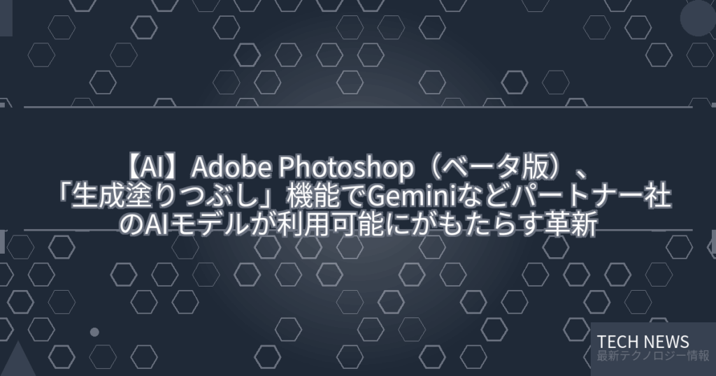 【AI】Adobe Photoshop(ベータ版)、「生成塗りつぶし」機能でGeminiなどパートナー社のAIモデルが利用可能にがもたらす革新