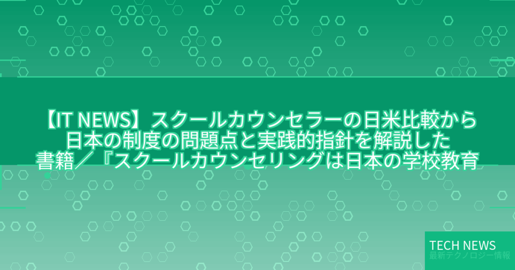 【IT NEWS】スクールカウンセラーの日米比較から日本の制度の問題点と実践的指針を解説した書籍/『スクールカウンセリングは日本の学校教育を変えられるか』が発売Book Watch/ニュース