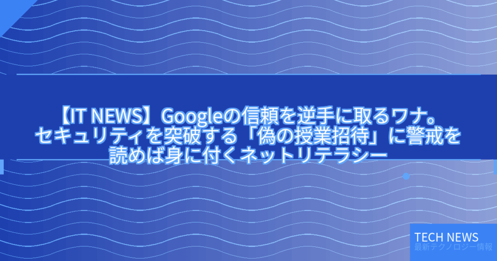 【IT NEWS】Googleの信頼を逆手に取るワナ。セキュリティを突破する「偽の授業招待」に警戒を読めば身に付くネットリテラシー