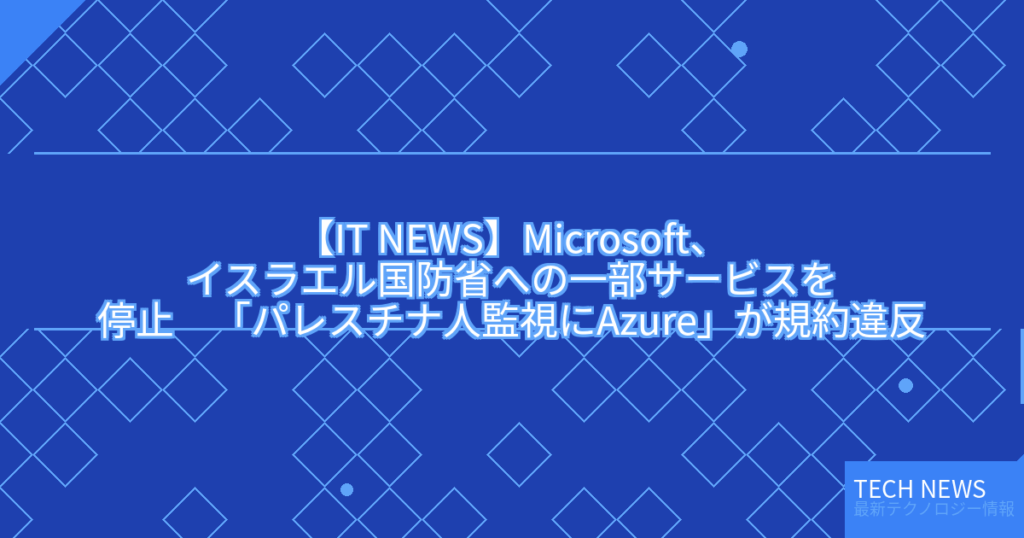 Microsoftは、イスラエル国防省によるAzureの規約違反を受け、同省への一部サービスを停止したと発表。Guardian紙の報道を機に調査し、パレスチナ人の監視データ保管にAzureが利用されていた証拠を発見したためとしている。 -