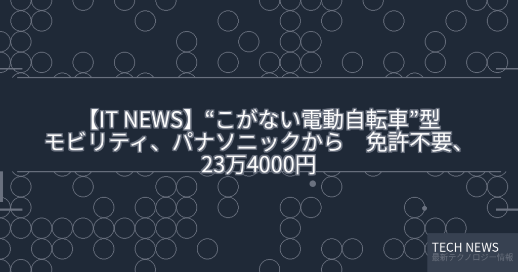 【IT NEWS】“こがない電動自転車”型モビリティ、パナソニックから 免許不要、23万4000円