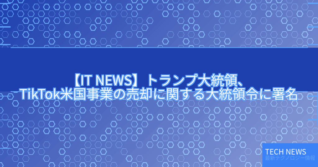 【IT NEWS】トランプ大統領、TikTok米国事業の売却に関する大統領令に署名