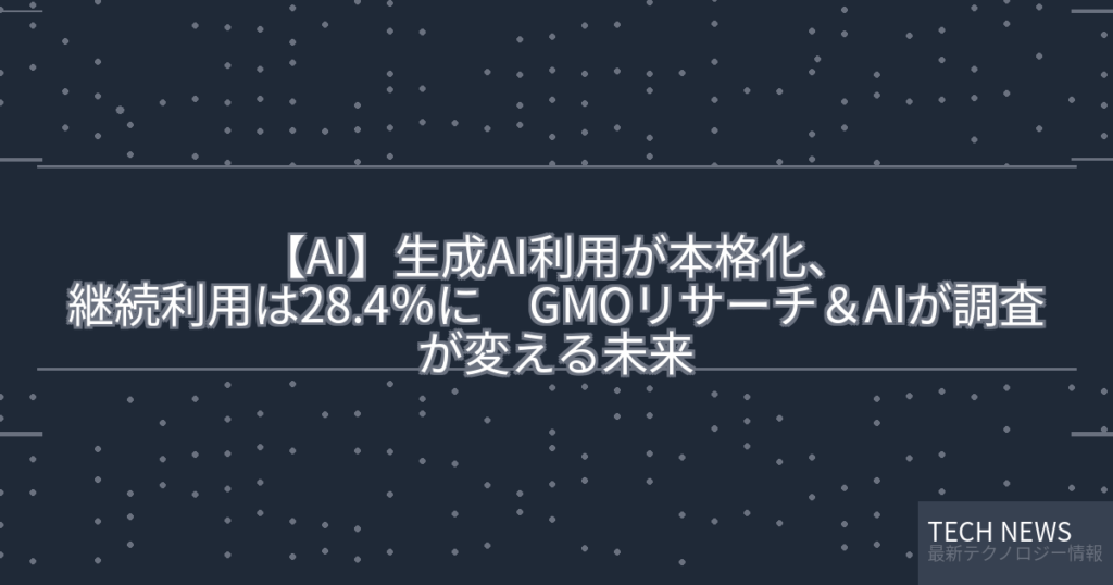 【AI】生成AI利用が本格化、継続利用は28.4%に GMOリサーチ&AIが調査が変える未来