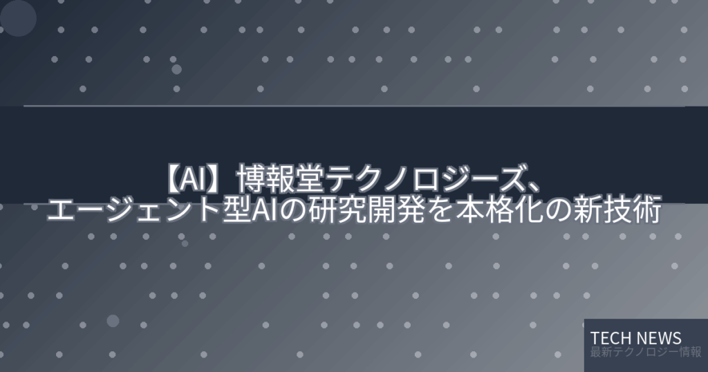 【AI】博報堂テクノロジーズ、エージェント型AIの研究開発を本格化の新技術