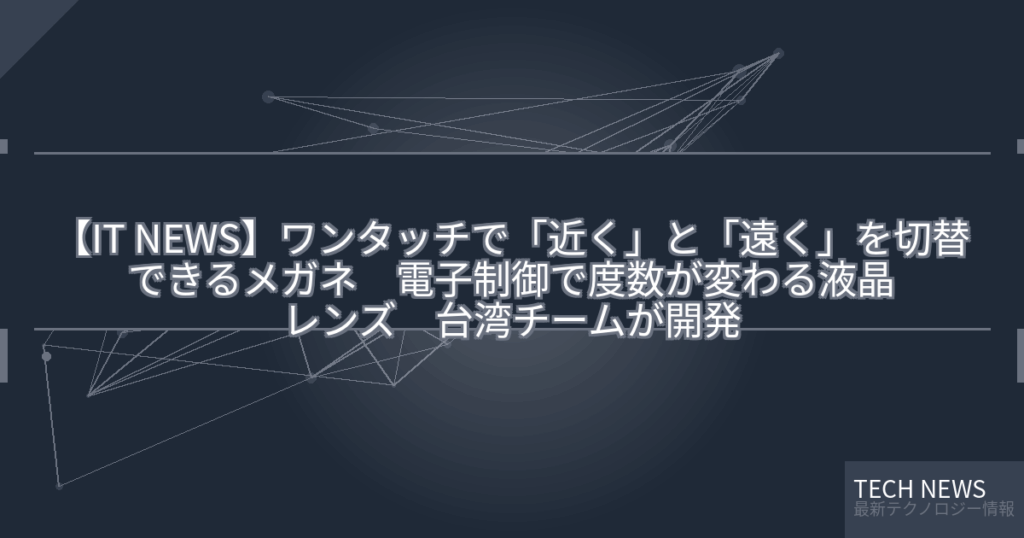 【IT NEWS】ワンタッチで「近く」と「遠く」を切替できるメガネ 電子制御で度数が変わる液晶レンズ 台湾チームが開発