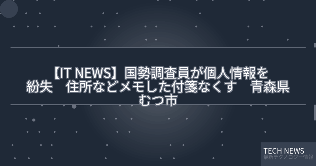 【IT NEWS】国勢調査員が個人情報を紛失 住所などメモした付箋なくす 青森県むつ市