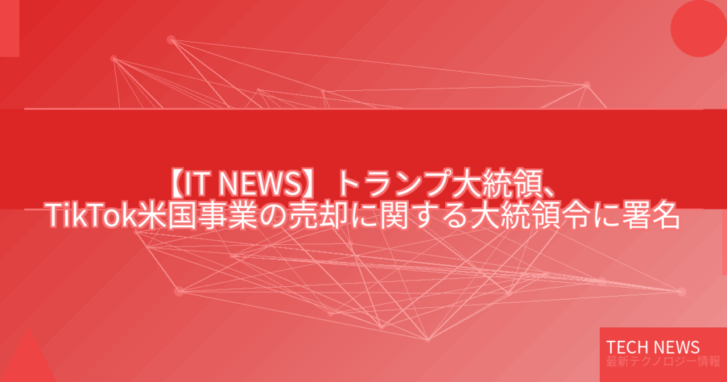 【IT NEWS】トランプ大統領、TikTok米国事業の売却に関する大統領令に署名
