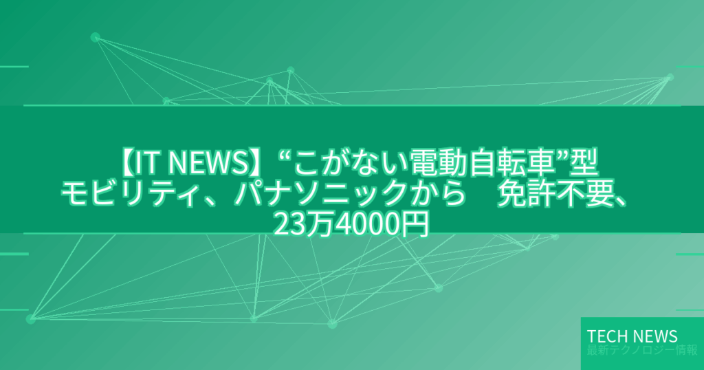 【IT NEWS】“こがない電動自転車”型モビリティ、パナソニックから 免許不要、23万4000円
