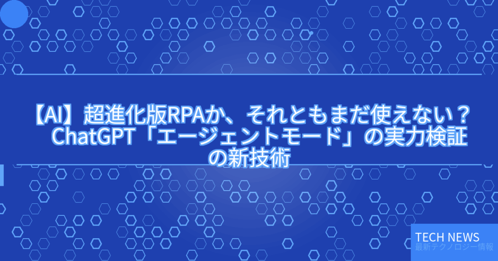 【AI】超進化版RPAか、それともまだ使えない? ChatGPT「エージェントモード」の実力検証の新技術