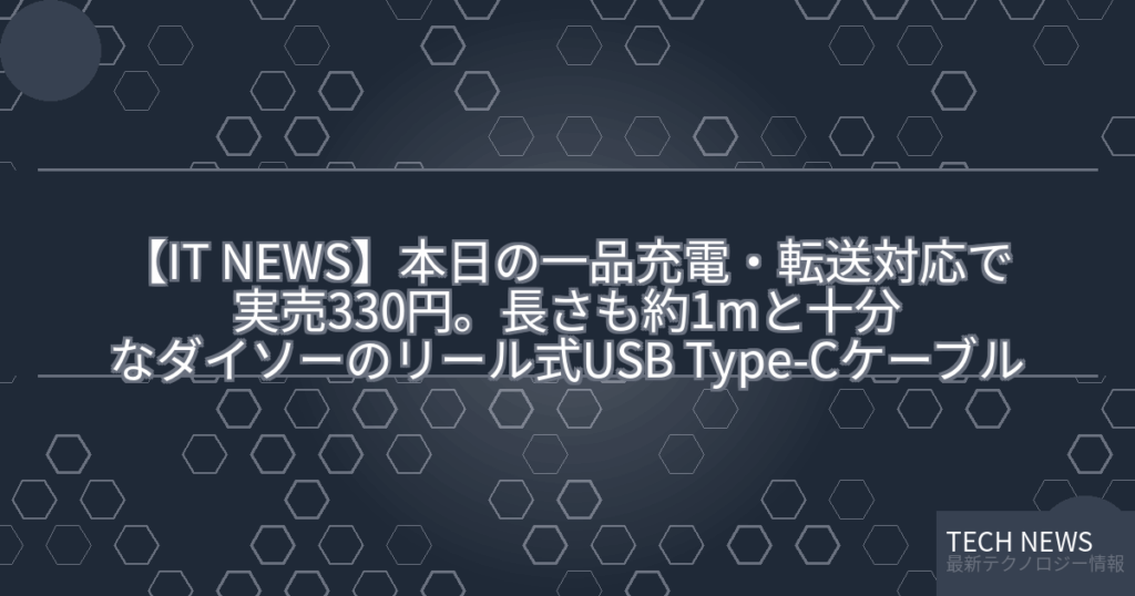 【IT NEWS】本日の一品充電・転送対応で実売330円。長さも約1mと十分なダイソーのリール式USB Type-Cケーブル