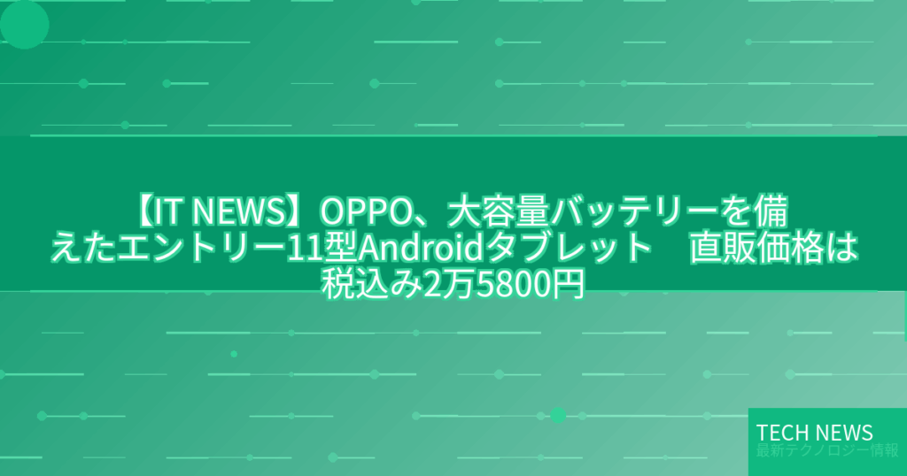 【IT NEWS】OPPO、大容量バッテリーを備えたエントリー11型Androidタブレット 直販価格は税込み2万5800円