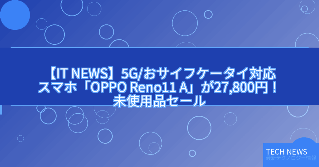 【IT NEWS】5G/おサイフケータイ対応スマホ「OPPO Reno11 A」が27,800円!未使用品セール