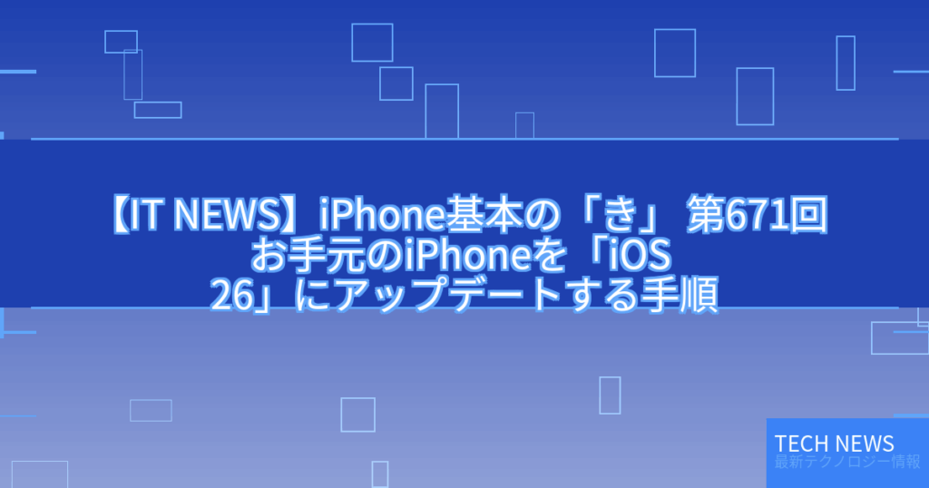 【IT NEWS】iPhone基本の「き」 第671回 お手元のiPhoneを「iOS 26」にアップデートする手順