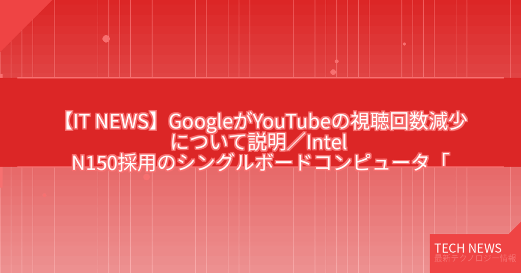 【IT NEWS】GoogleがYouTubeの視聴回数減少について説明/Intel N150採用のシングルボードコンピュータ「LattePanda IOTA」登場