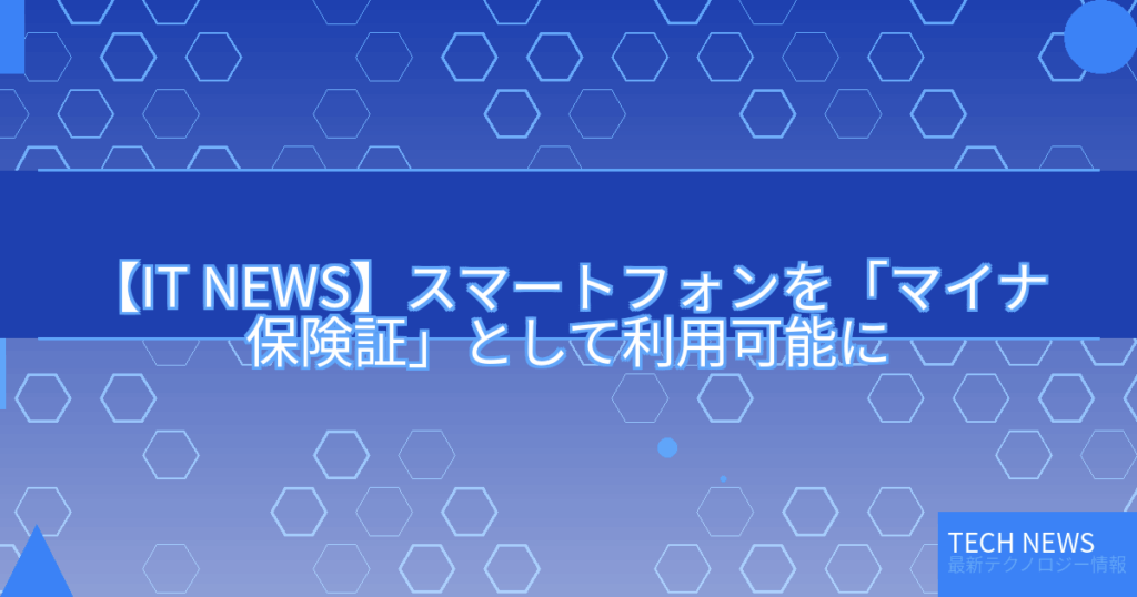 【IT NEWS】スマートフォンを「マイナ保険証」として利用可能に