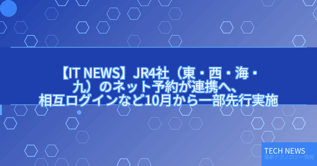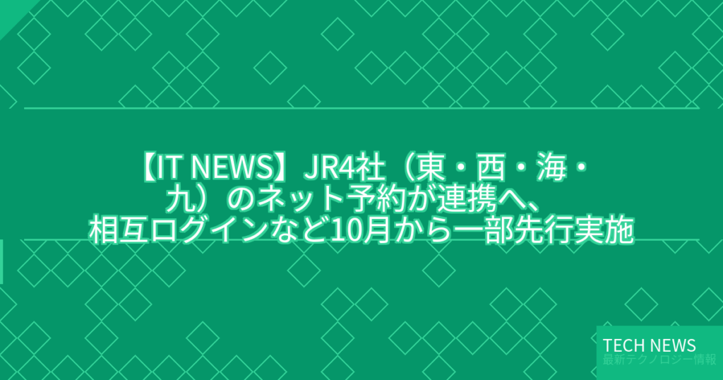 【IT NEWS】JR4社(東・西・海・九)のネット予約が連携へ、相互ログインなど10月から一部先行実施