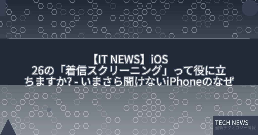 【IT NEWS】iOS 26の「着信スクリーニング」って役に立ちますか? – いまさら聞けないiPhoneのなぜ