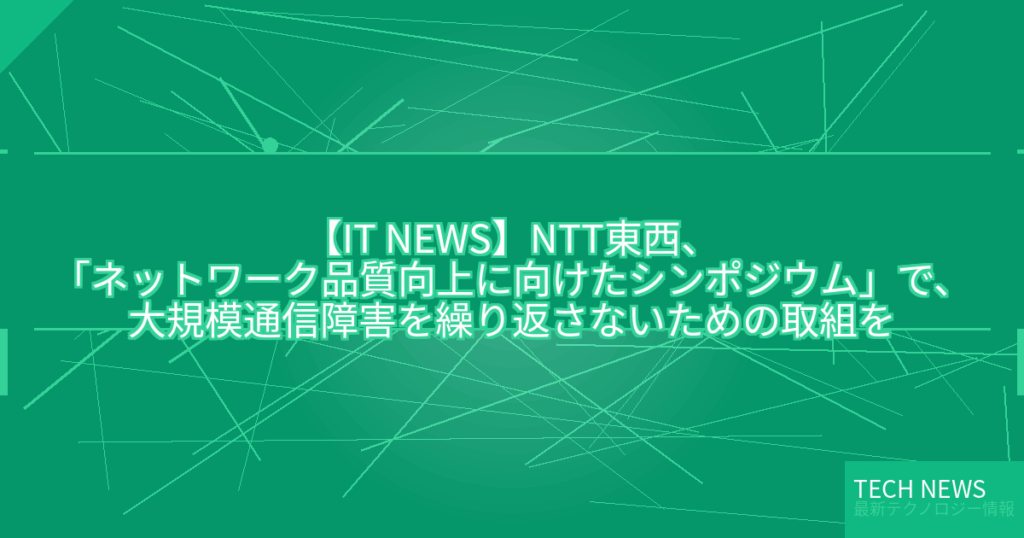 【IT NEWS】NTT東西、「ネットワーク品質向上に向けたシンポジウム」で、大規模通信障害を繰り返さないための取組を発表 2023年にMoUを締結した各社が参加