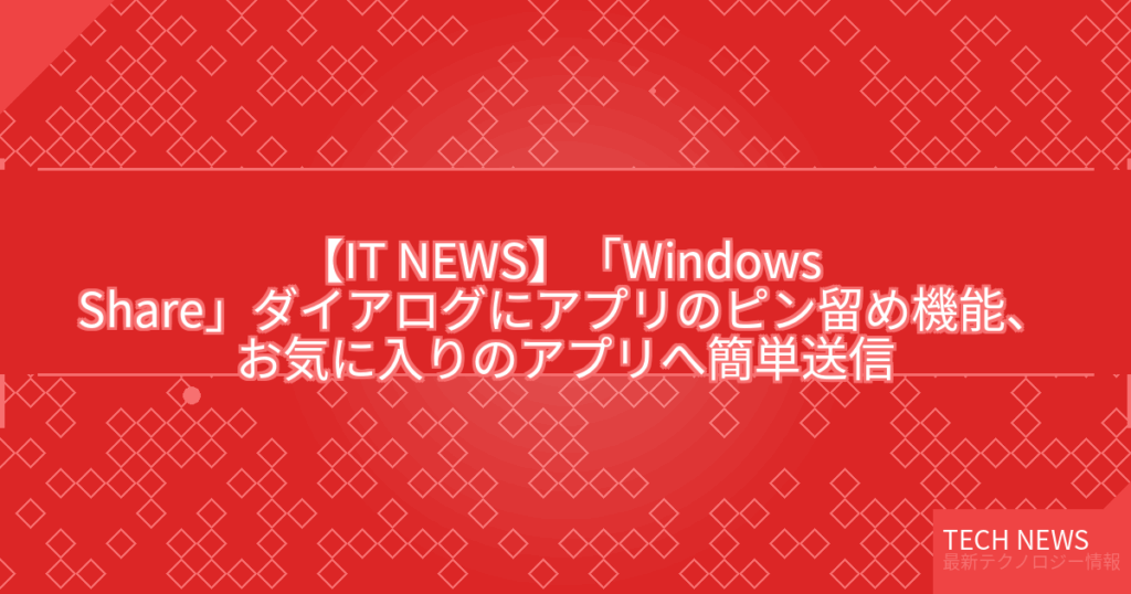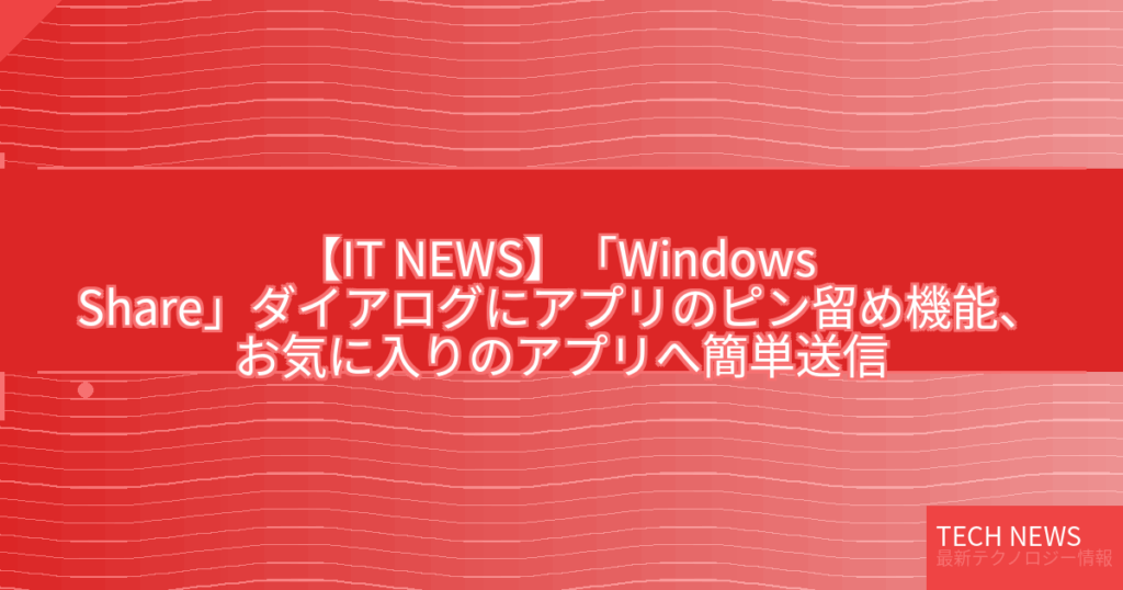 【IT NEWS】「Windows Share」ダイアログにアプリのピン留め機能、お気に入りのアプリへ簡単送信