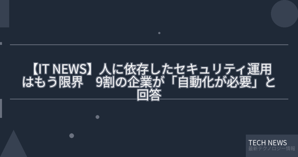 【IT NEWS】人に依存したセキュリティ運用はもう限界 9割の企業が「自動化が必要」と回答