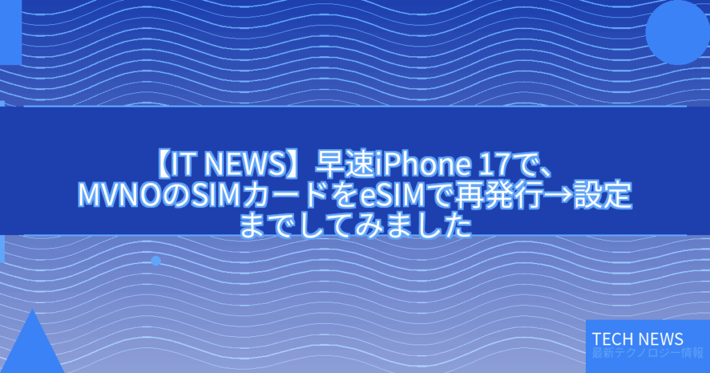 【IT NEWS】早速iPhone 17で、MVNOのSIMカードをeSIMで再発行→設定までしてみました