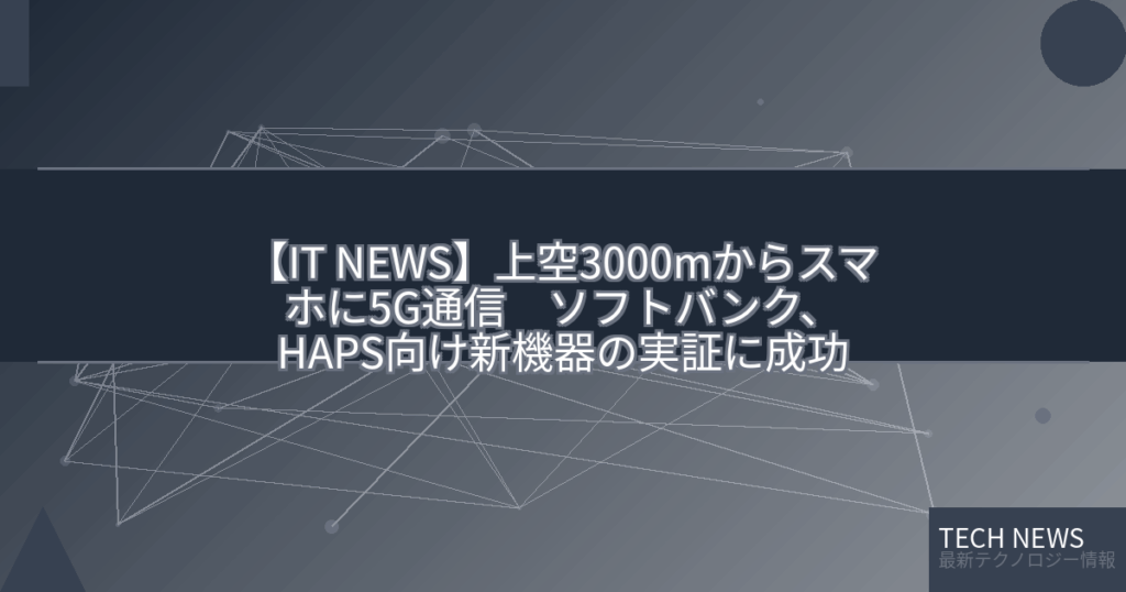 【IT NEWS】上空3000mからスマホに5G通信 ソフトバンク、HAPS向け新機器の実証に成功