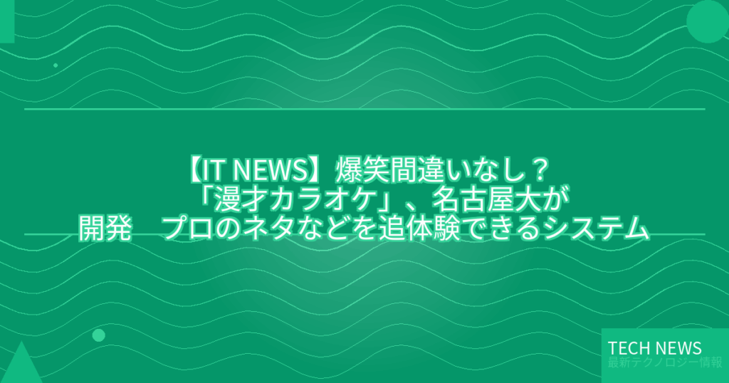 【IT NEWS】爆笑間違いなし? 「漫才カラオケ」、名古屋大が開発 プロのネタなどを追体験できるシステム