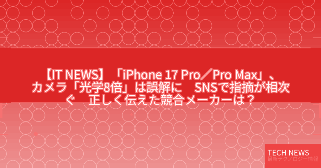 【IT NEWS】「iPhone 17 Pro/Pro Max」、カメラ「光学8倍」は誤解に SNSで指摘が相次ぐ 正しく伝えた競合メーカーは?