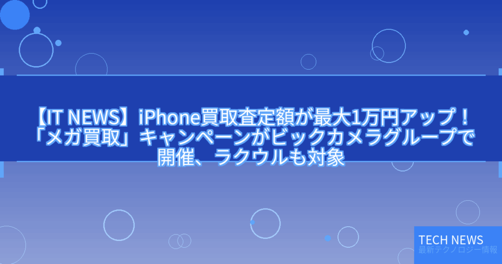 【IT NEWS】iPhone買取査定額が最大1万円アップ!「メガ買取」キャンペーンがビックカメラグループで開催、ラクウルも対象