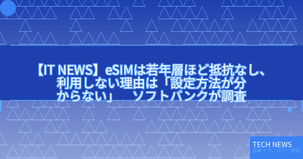 【IT NEWS】eSIMは若年層ほど抵抗なし、利用しない理由は「設定方法が分からない」 ソフトバンクが調査