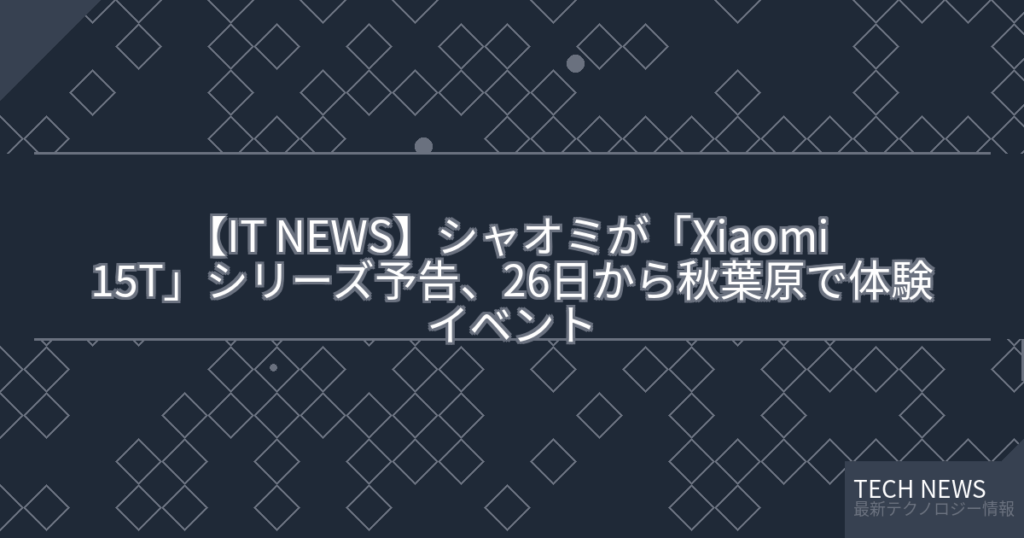 【IT NEWS】シャオミが「Xiaomi 15T」シリーズ予告、26日から秋葉原で体験イベント