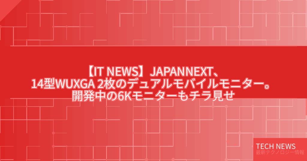【IT NEWS】JAPANNEXT、14型WUXGA 2枚のデュアルモバイルモニター。開発中の6Kモニターもチラ見せ