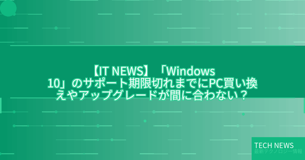 【IT NEWS】「Windows 10」のサポート期限切れまでにPC買い換えやアップグレードが間に合わない? 暫定措置の「拡張セキュリティ更新プログラム(ESU)」をチェック!