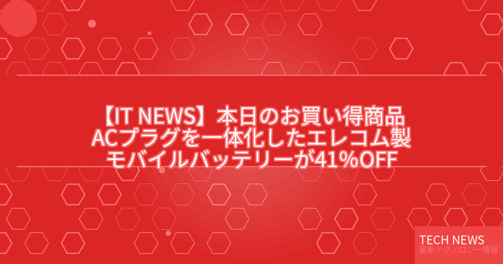 【IT NEWS】本日のお買い得商品 ACプラグを一体化したエレコム製モバイルバッテリーが41%OFF