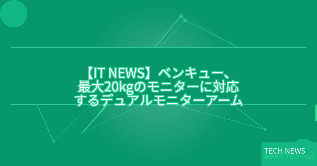 【IT NEWS】ベンキュー、最大20kgのモニターに対応するデュアルモニターアーム