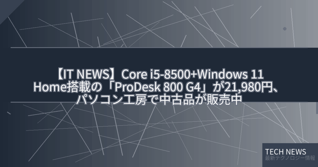 【IT NEWS】Core i5-8500+Windows 11 Home搭載の「ProDesk 800 G4」が21,980円、パソコン工房で中古品が販売中
