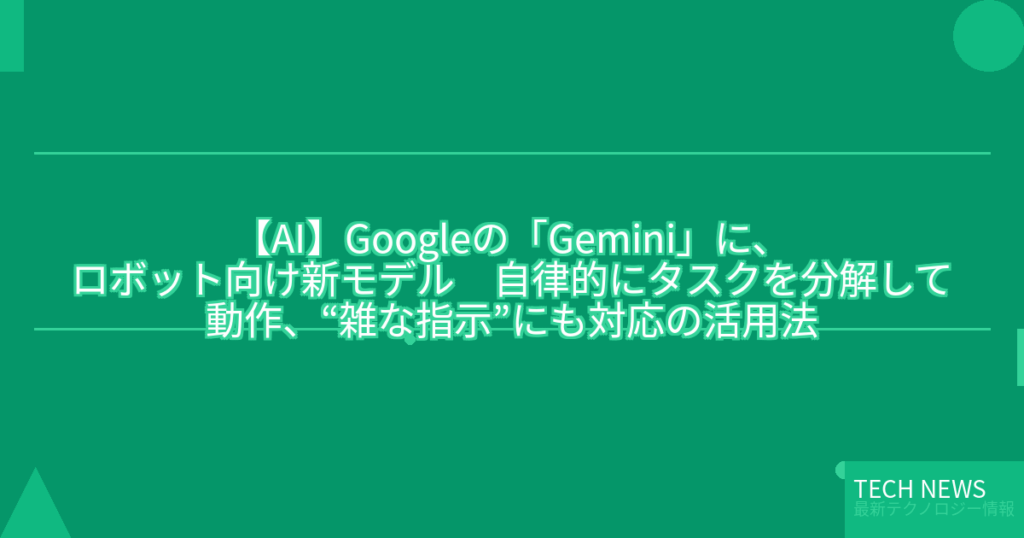 【AI】Googleの「Gemini」に、ロボット向け新モデル 自律的にタスクを分解して動作、“雑な指示”にも対応の活用法