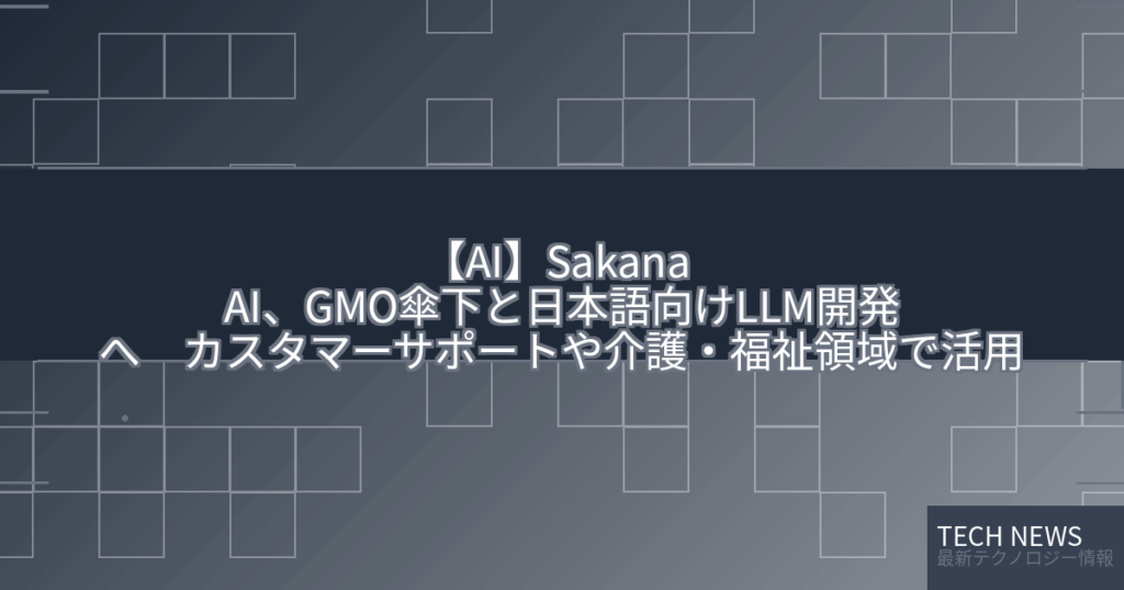【AI】Sakana AI、GMO傘下と日本語向けLLM開発へ カスタマーサポートや介護・福祉領域で活用