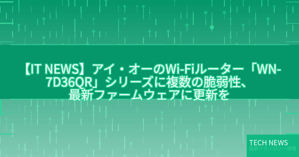 【IT NEWS】アイ・オーのWi-Fiルーター「WN-7D36QR」シリーズに複数の脆弱性、最新ファームウェアに更新を