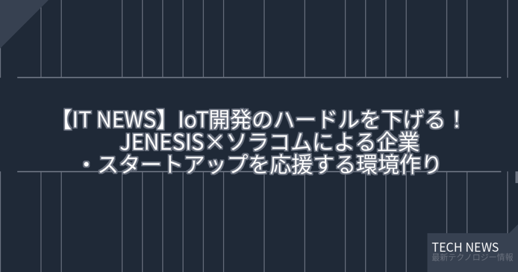 【IT NEWS】IoT開発のハードルを下げる! JENESIS×ソラコムによる企業・スタートアップを応援する環境作り