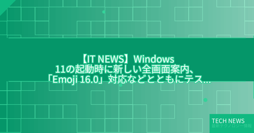 【IT NEWS】Windows 11の起動時に新しい全画面案内、「Emoji 16.0」対応などとともにテスト開始/「Click to Do」には新たに「Copilot プロンプトボックス」を導入