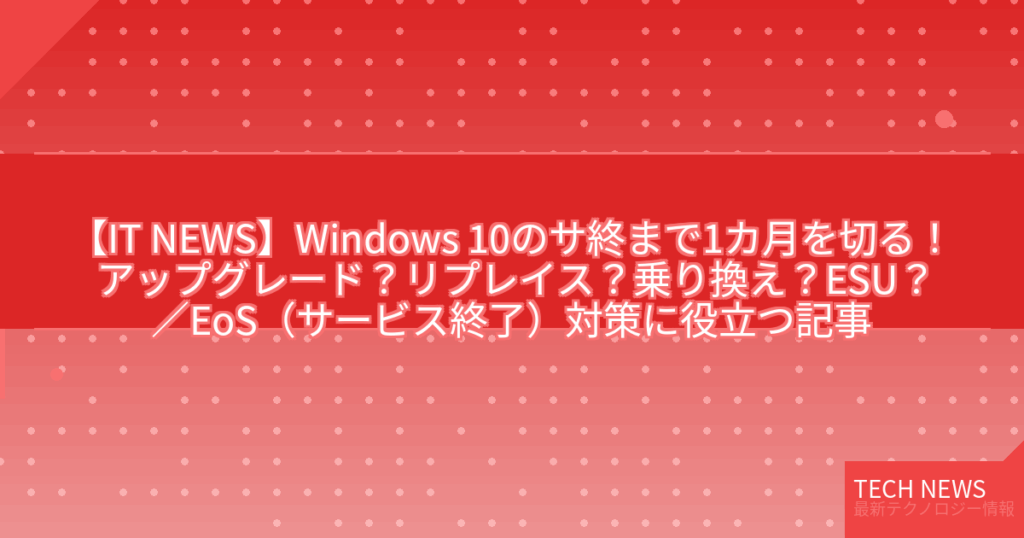 【IT NEWS】Windows 10のサ終まで1カ月を切る! アップグレード?リプレイス?乗り換え?ESU?/EoS(サービス終了)対策に役立つ記事をピックアップやじうまの杜