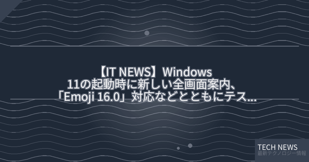 【IT NEWS】Windows 11の起動時に新しい全画面案内、「Emoji 16.0」対応などとともにテスト開始/「Click to Do」には新たに「Copilot プロンプトボックス」を導入