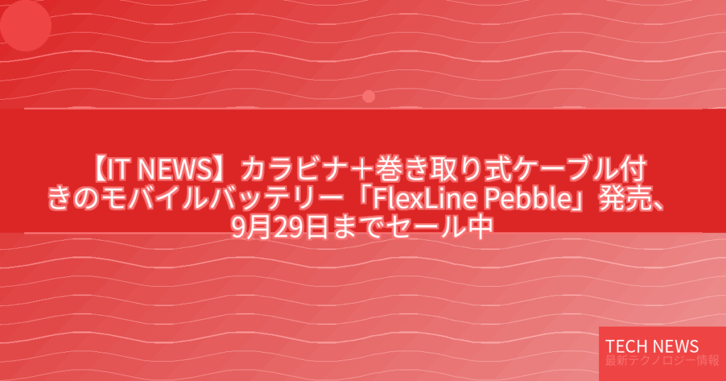 【IT NEWS】カラビナ+巻き取り式ケーブル付きのモバイルバッテリー「FlexLine Pebble」発売、9月29日までセール中
