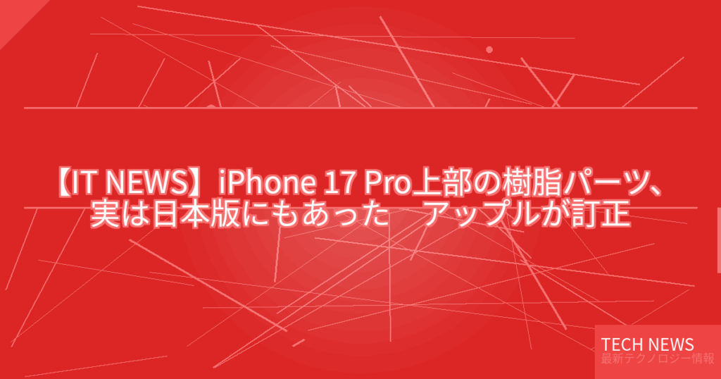 【IT NEWS】iPhone 17 Pro上部の樹脂パーツ、実は日本版にもあった アップルが訂正